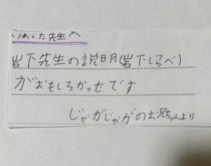 感想を寄せてくれた生徒さんのお兄ちゃんのコメントです。